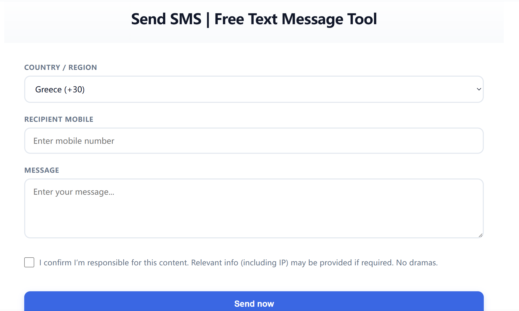 Currently, our platform only supports sending test SMS messages to Greece and France. The specific steps are as follows:
